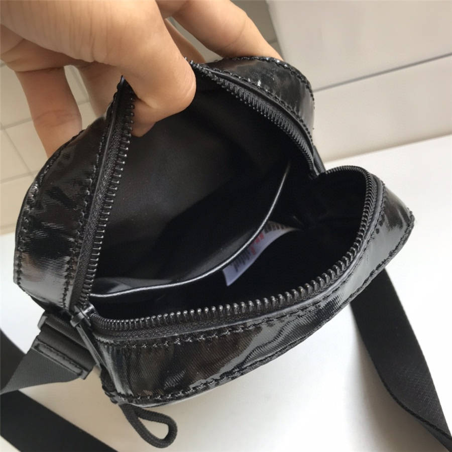 B家新款光胶系列,精巧的斜背包,焕新选用光泽感涂层帆布制成,印有品牌徽标与标志性条纹,设有光滑皮革装饰与可调式网纹尼龙斜背带。