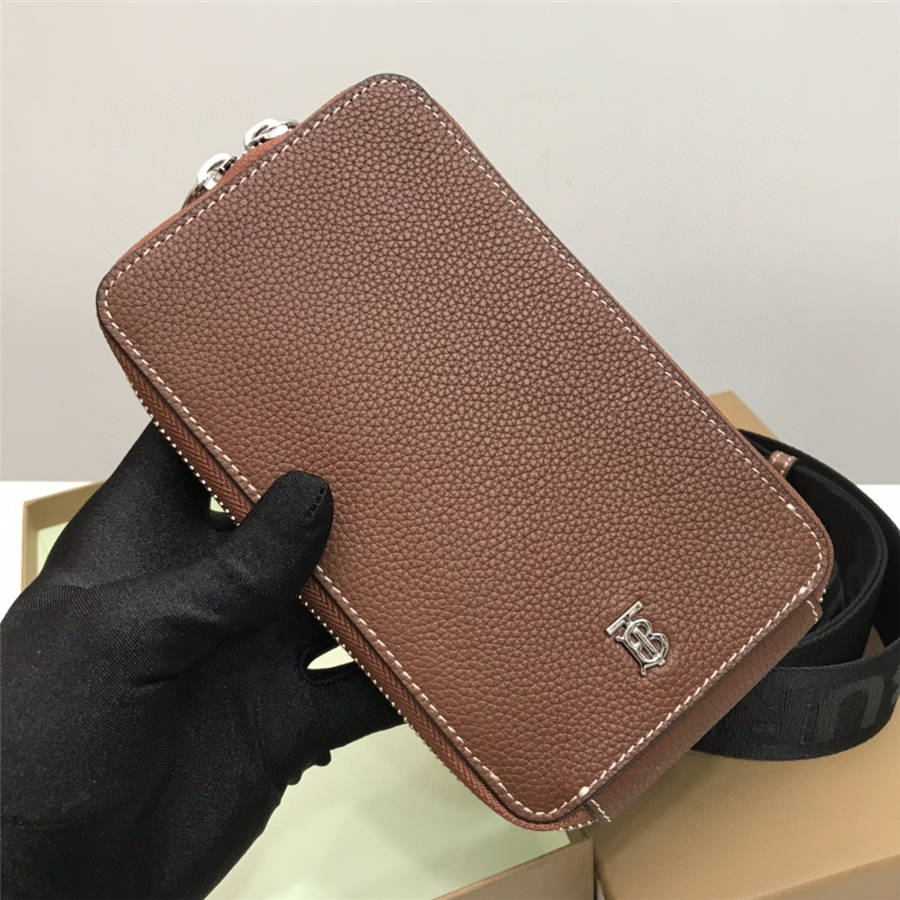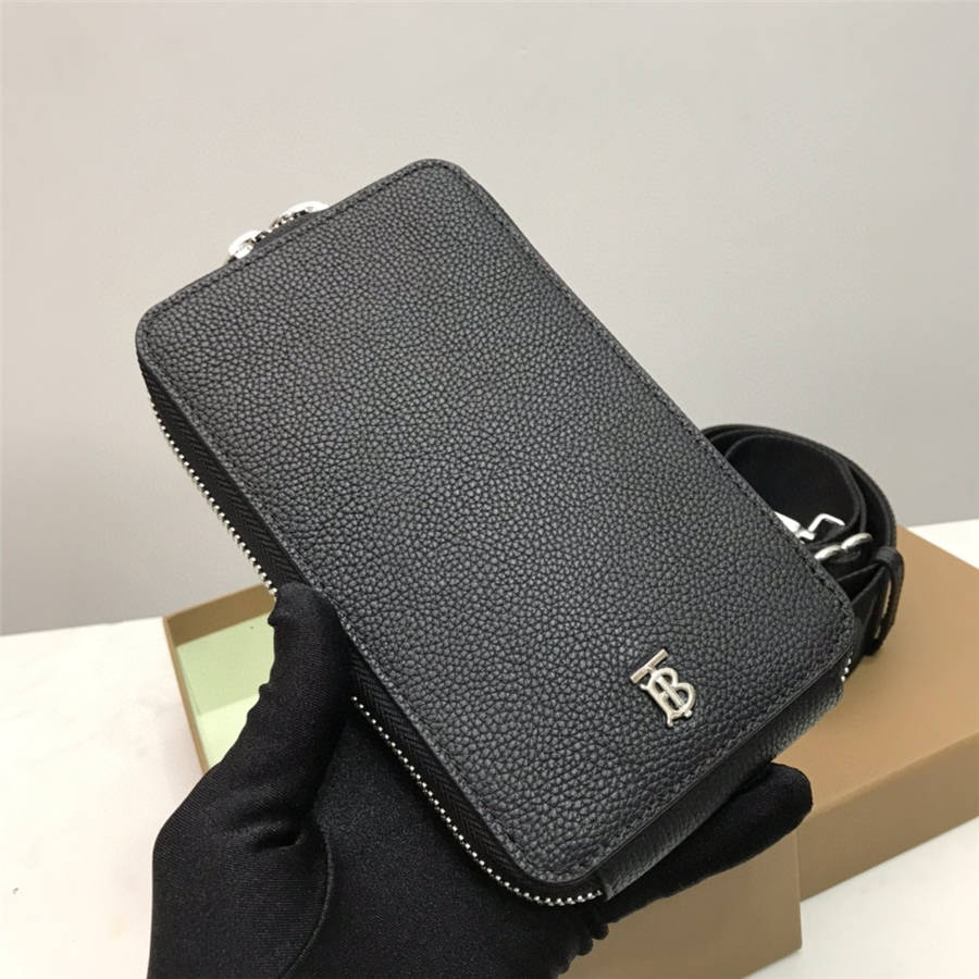【B家顶级原单】粒纹皮革手机保护套,饰有品牌专属标识图案,尺寸适合装纳各种型号的 iPhone。可拆式背带装饰提花精纺徽标,随心打造斜背造型。